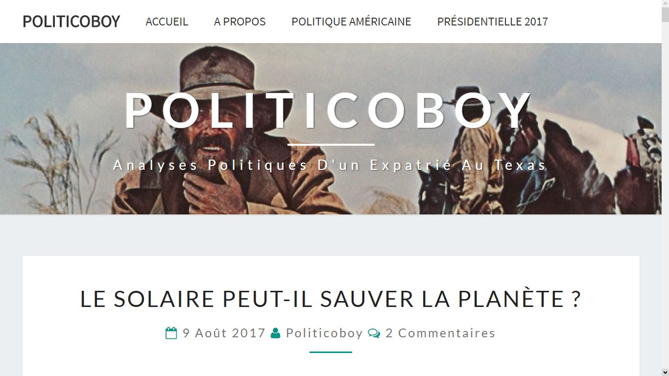 Politicoboy, c’est le blog d’un Français expatrié au Texas dont nous allons critiquer l’un de ses billets, (au demeurant excellents), parce qu’il dispense un discours trompeur : « Le solaire peut-il sauver la planète ? » A sa décharge il faut bien dire qu’il est loin d’être le seul. Alain GrandJean vient de signer un article très fouillé qui va dans le même sens, et qui présente le même défaut : le stockage n’est pas chiffré. Il démarre très fort :