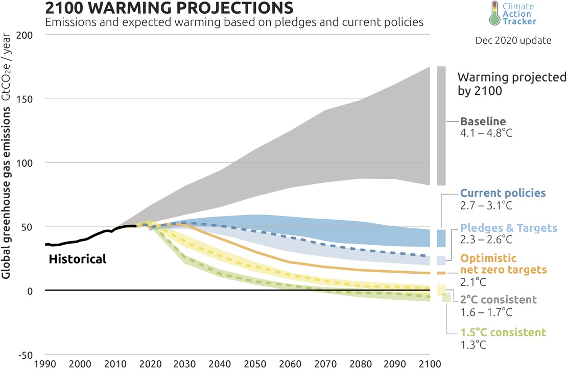 De tout façon, Accord de Paris ou pas, il est impossible de savoir quelle trajectoire sera effectivement suivie. Cet accord a seulement le mérite de populariser la fin des énergies fossiles, et ainsi de légitimer le désinvestissement dans ce domaine, en même temps qu’il légitime d’investir dans les énergies renouvelables. Il offre une marge de manœuvre aux institutions privées et publiques pour anticiper la fin du pétrole, ce qui était impossible quelques décennies plus tôt. Mais il n’y a rien de plus à en attendre, chaque pays fera ce qu’il pourra, et tous ne peuvent pas dès aujourd’hui lancer des mégas projets de parcs éoliens à l’instar de la Grande Bretagne, ou solaires comme en Australie. C’est pourquoi les scénarios du GIEC nous laisse de marbre.